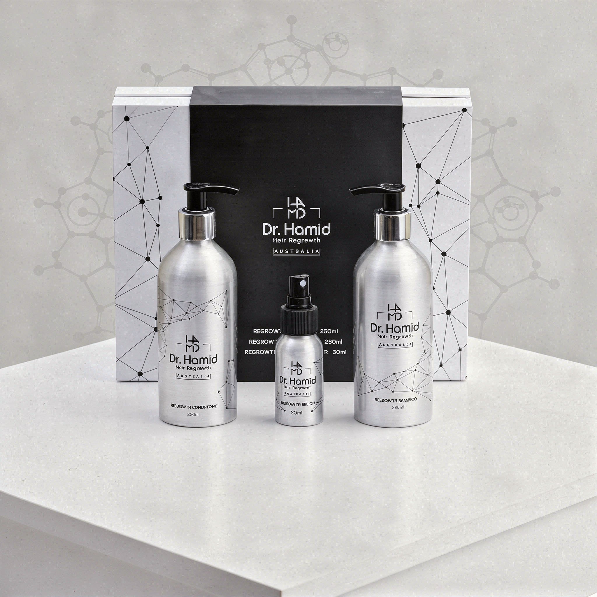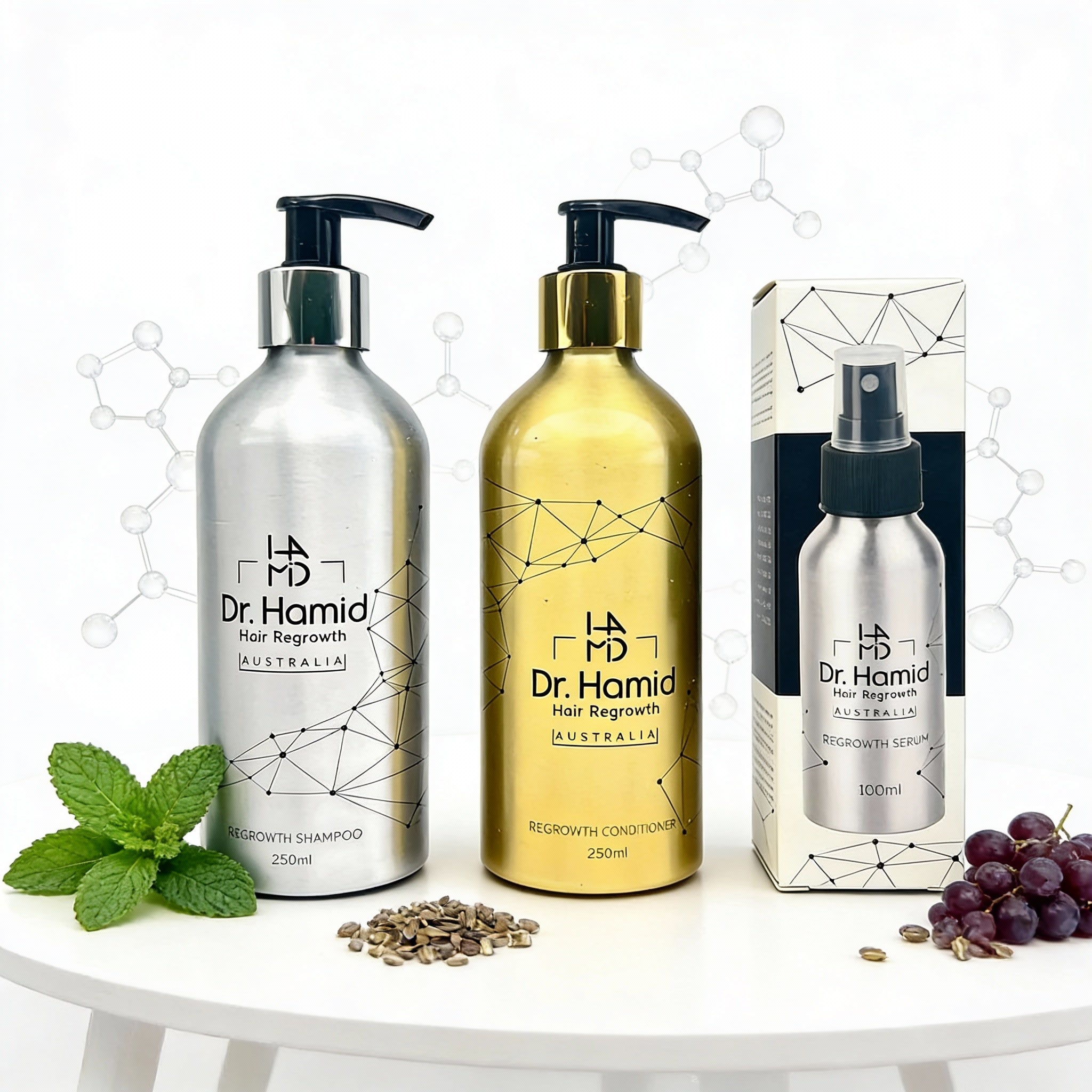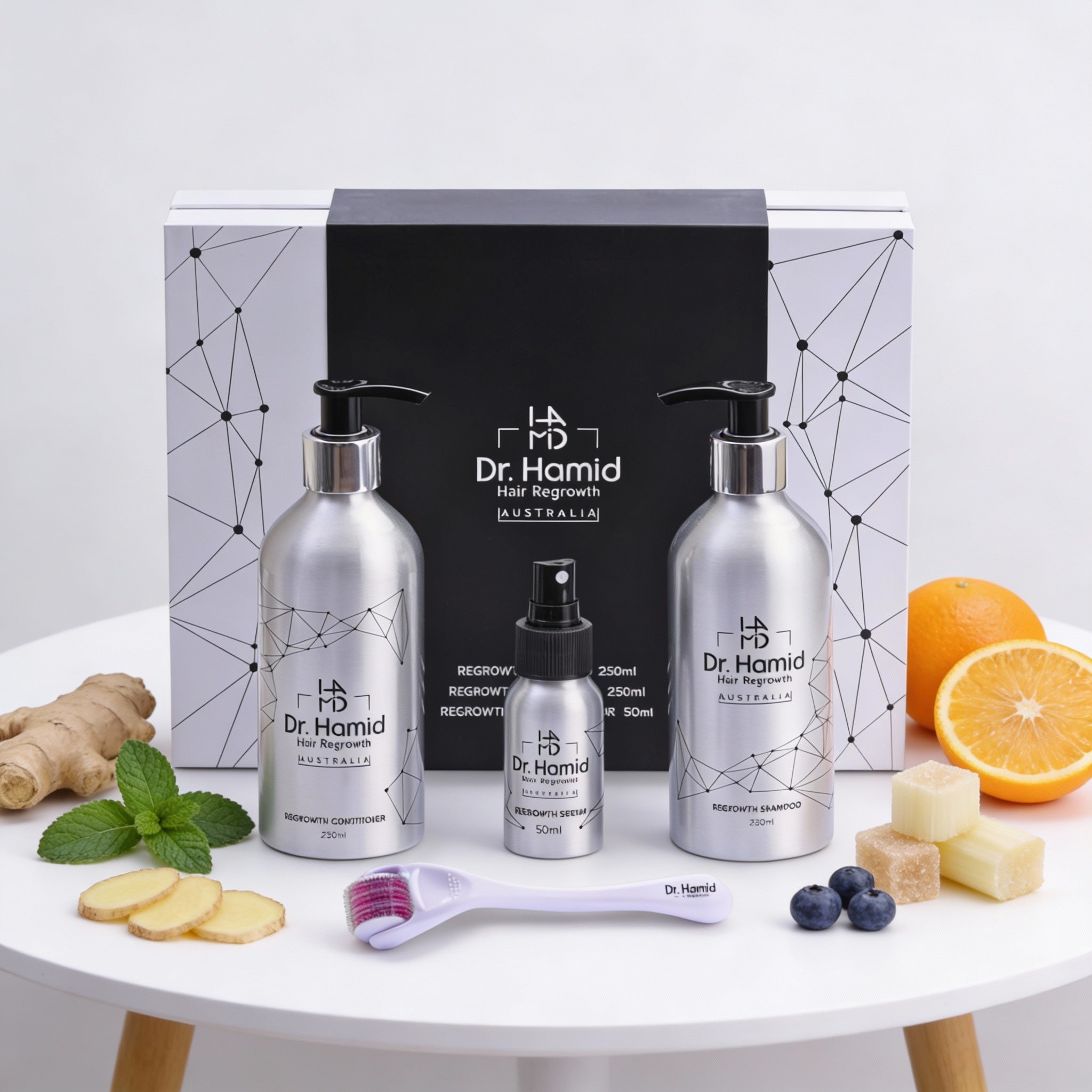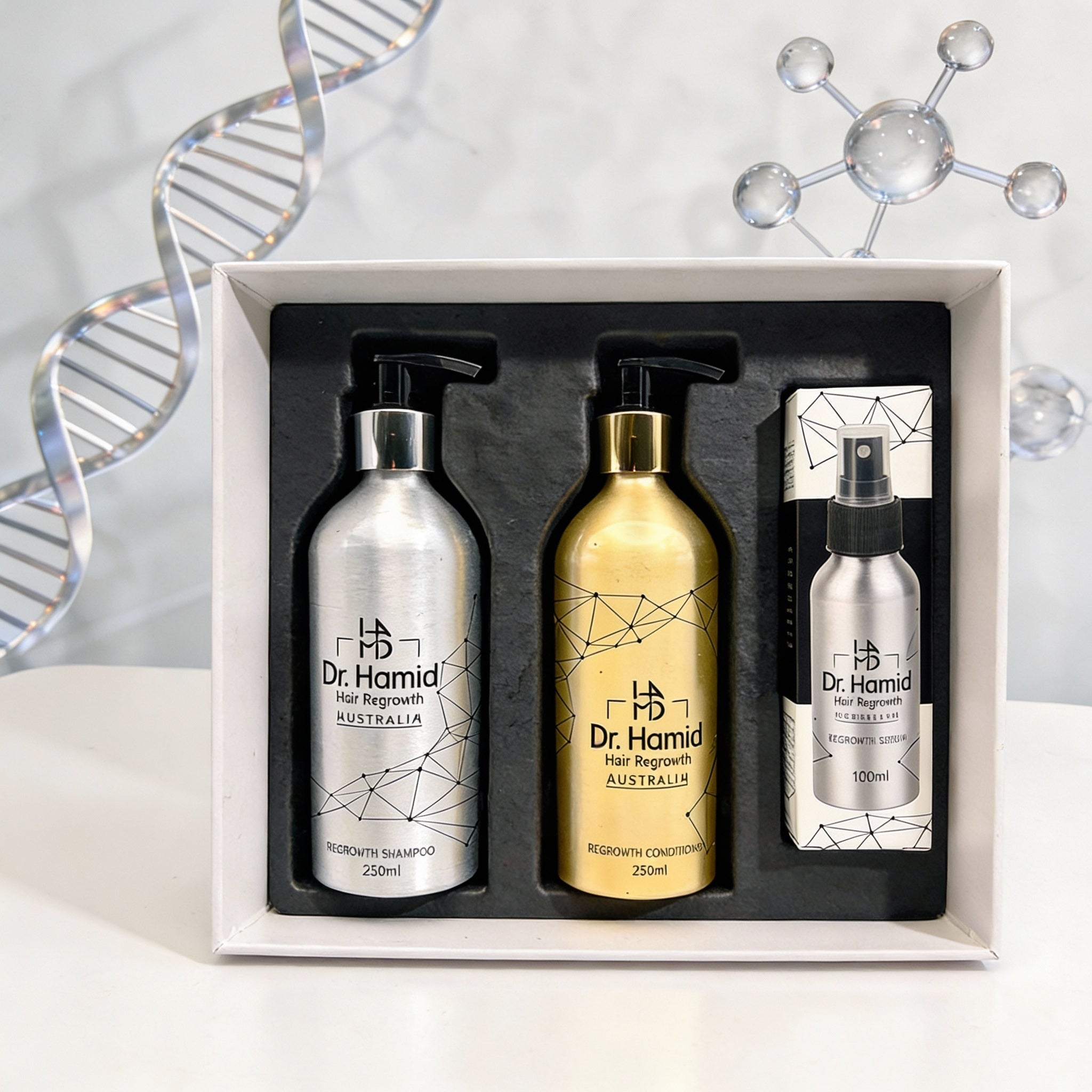 Our shampoo, conditioner, and serum are designed to work harmoniously, addressing various aspects of hair growth and delivering essential nutrients to your hair follicles. We encourage you to use the complete Dr. Hamid Hair Regrowth package as intended for the best results. This will allow you to experience the cumulative benefits of our products for healthier and revitalized hair.
